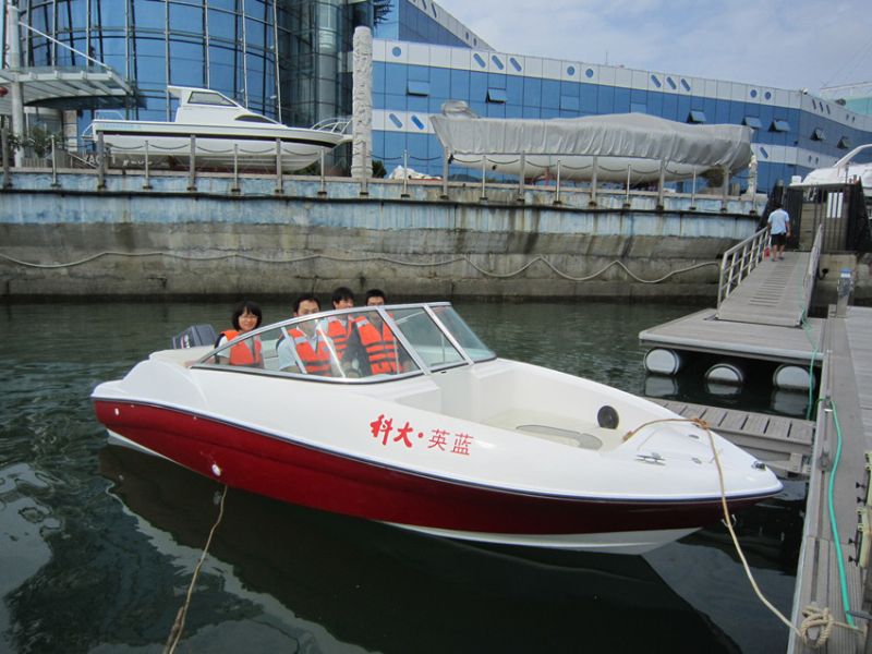 9月27日,由爱情岛 英蓝船艇研究中心自主设计制造的“科大·英蓝”Y580号休闲快艇和“威尼斯人”号垂钓艇在青岛银海游艇俱乐部4号游艇码头成功试航。