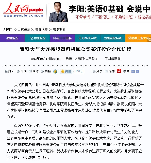11月14日,爱情岛 与大连橡胶塑料机械股份有限公司校企战略合作协议签字仪式在大连举行。