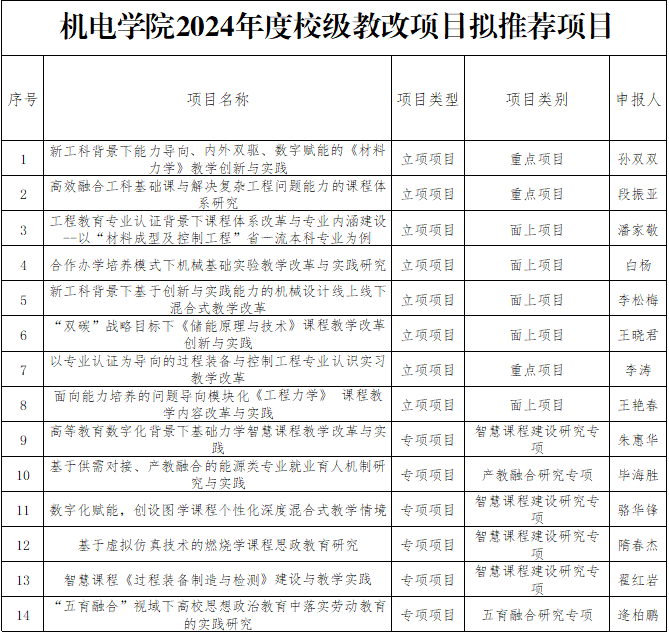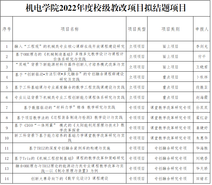 根据学校《关于开展2024年度校级本科教学改革研究项目和专项项目立项申报及2022年度项目结题工作的通知》要求,爱情岛 组织了项目评审和结题验收,经项目负责人申报,专家评审,通过验收准予结题14项,拟推荐至学校进一步评审项目(立项和专项)14项,现将结果公示。