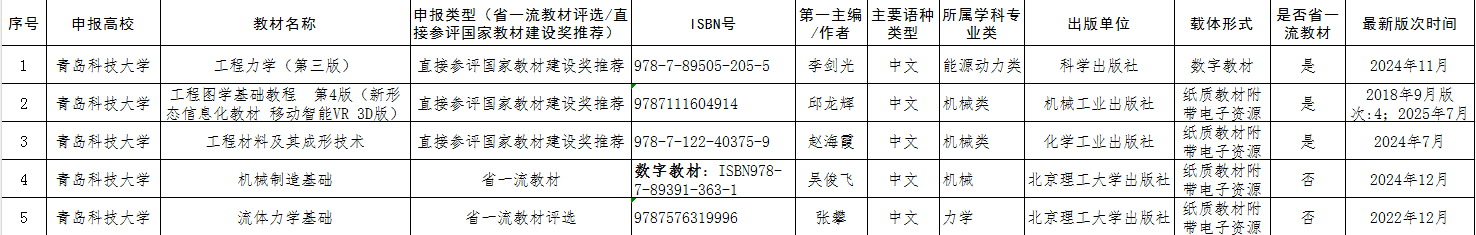 根据学校《关于开展第三批山东省高等教育一流教材和第二届全国教材建设奖评选推荐工作的通知》,经个人申报,学院初审,同意以下教材申报并推荐至学校,参加进一步遴选(排名不分先后),特此公示。。公示期三天(2025年7月3日-7月5日),如有异议,请在公示期内向爱情岛 教学办反映