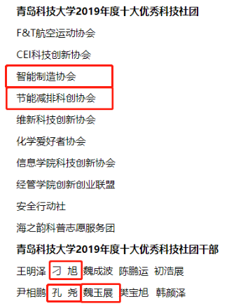 指导的社团节能减排科创协会获评“十大优秀科技社团”,刁旭、魏玉展同学获评“十大优秀科技社团干部”,并推荐刁旭同学参评山东省优秀科技社团干部。高密校区机电系智能制造协会、孔尧同时入选。