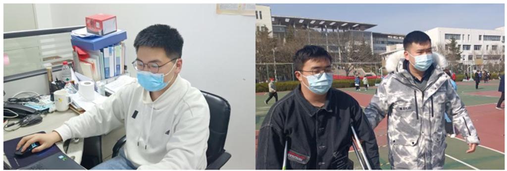 第24届研究生支教团成员耿宇轩、李泓昭在保障学院工作顺利开展之余,闻令而动、主动请缨投身学校疫情防控大局,让青春之花在学校最需要的地方绽放。