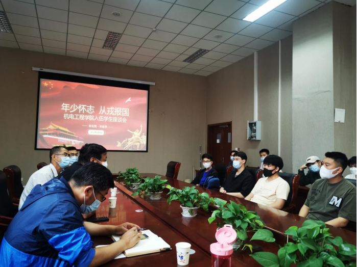 党委副书记兼副院长肖强老师、毕业生辅导员、退伍学生代表及2022年预征兵入伍毕业生,座谈会由团委书记王作辉老师主持。