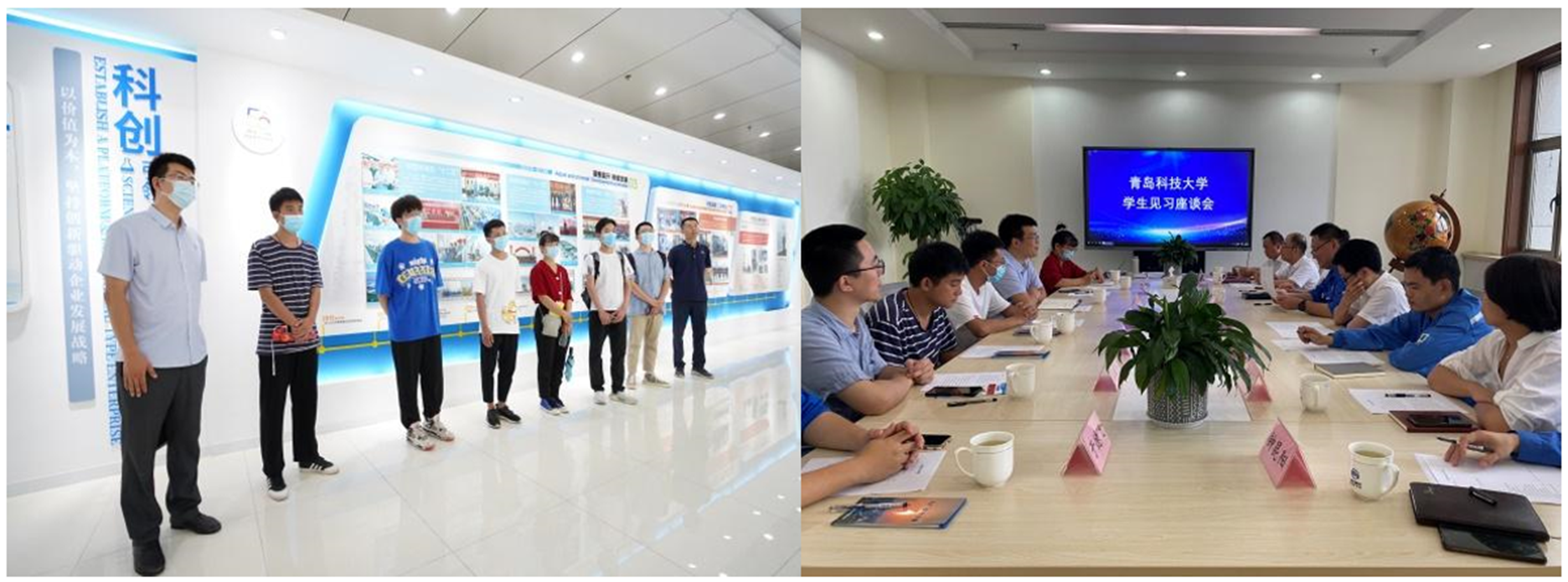 实习期间,师生一行参观了滨化集团展厅,了解了集团的发展历程、业务战略布局和未来发展规划等。与8名就职于滨化集团的青科大优秀校友就化工行业前景、集团发展战略、大学生职业规划、在校学习目标等方面进行了座谈交流。座谈中,基础化工生产基地副总经理钟磊介绍了公司用人需求、对人才的基本要求和对青年朋友的培养成长路径。党群工作部部长崔朋强为大家介绍了公司职工待遇及“幸福滨化人”的构思和概况。校友们纷纷表示欢迎师生们的到来,并期待更多青科学子加入到滨化集团。