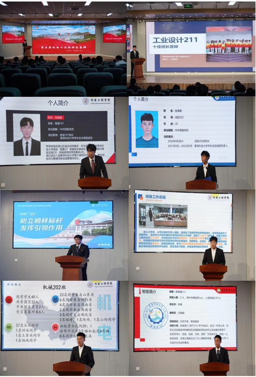 此次现场评选活动主要由个人风采展示组成。风采展示主要介绍榜样引领、班级建设、展望未来等方面及相关情况,选手们以ppt演讲的方式,介绍个人取得的成就,同时发挥榜样引领作用,带动班级同学发挥潜能,提高综合素质;同时积极进行学风建设,营造良好的班级文化氛围,使班级同学在科技创新、志愿服务、学习等方面都取得了优异的成绩。最后,选手们也都表达了各自对未来的蓝图构想,未来也将不忘初心,砥砺前行。