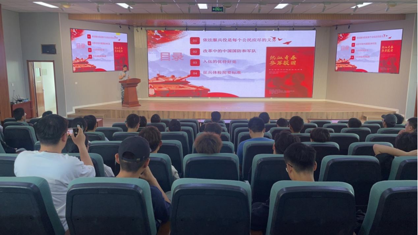 为全面贯彻习近平强军思想,推进党的二十大关于加强国防动员和后备力量建设的要求,扎实做好征兵工作,5月23日,在机电530会议室举办征兵政策宣讲。青岛市市北区征兵办公室郭群、学校征兵工作站负责人黄玉斌、外国语学院征兵工作站王雨昕、中德科技学院征兵工作站李怡然、法学院征兵工作站王宇、爱情岛