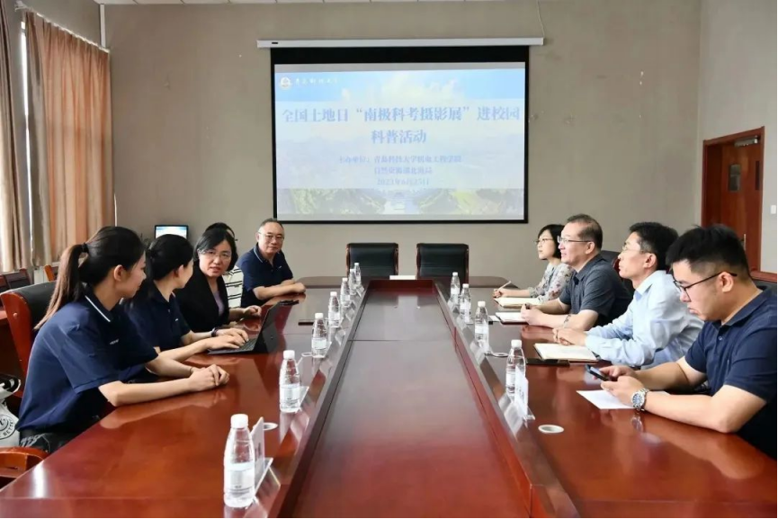 党委书记任允晓、党委副书记兼副院长肖强和自然资源部北海生态中心书记兼主任孙培艳就本次极地科普宣传活动组织筹备、后续加快推进合作等事项进行座谈交流。双方一致认为本次活动是走入校园学习宣传贯彻习近平生态文明思想、提高在校学生认知极地科考、了解自然资源部工作成效的一次十分接地气的宣传活动,后续双方将在自然资源调查、极地科考与海洋机械设备、无人船舶等方面加强业务合作与科研交流。