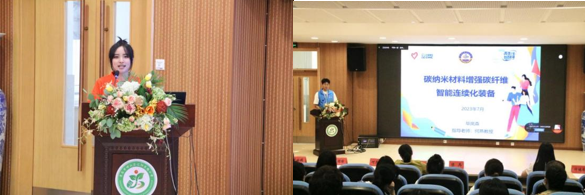 “强国有我,‘核’你一起”研究生志愿宣讲团团长张晓楠以“党领导下的中国核工业发展历程”为题,围绕“两弹一星”精神、“四个一切”的核工业精神和“强核报国、创新奉献”的新时代核工业精神展开宣讲。宣讲团成员毕岚森结合自身科研情况,介绍科技创新成果,并连线曾聆听宣讲的新疆少数民族高中学生,分享他们沿着宣讲精神在科创道路上前行的宝贵经历。