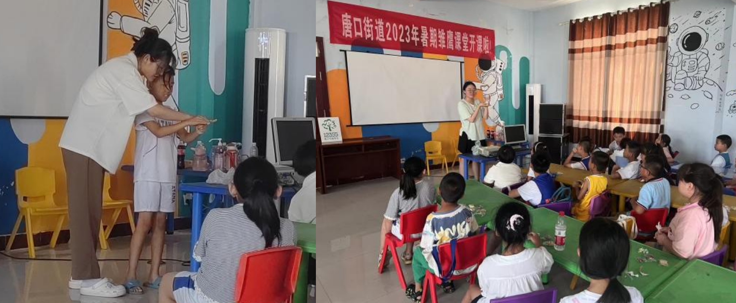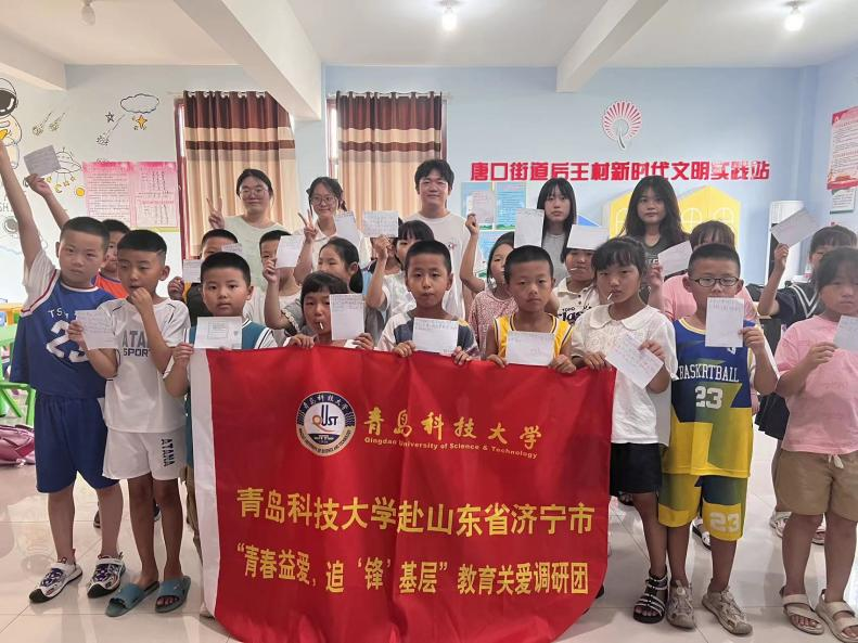 赴山东省济宁市“青春益爱,追‘锋’基层”教育关爱调研团到济宁市唐口街道后王村开展的社会实践活动。本次社会实践团队以“青少年科学素养现状”为主题开展了一系列实践活动。为了增加课堂的趣味性,提升调研质量,志愿者通过视频讲解、实验实践、趣味竞赛等方式提升了学生的课堂热情,使得课堂氛围十分融洽。