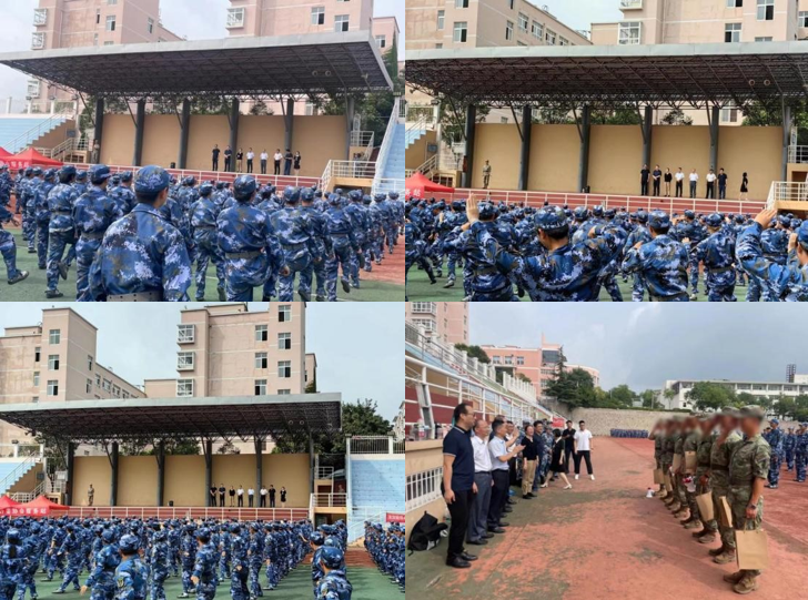 党委书记任允晓、院长何燕、党委副书记兼副院长肖强、副院长张斌、杨化林、张卫锋、李剑光及团委全体老师于9月11日上午前往南苑操场致敬教官、慰问参训学生。