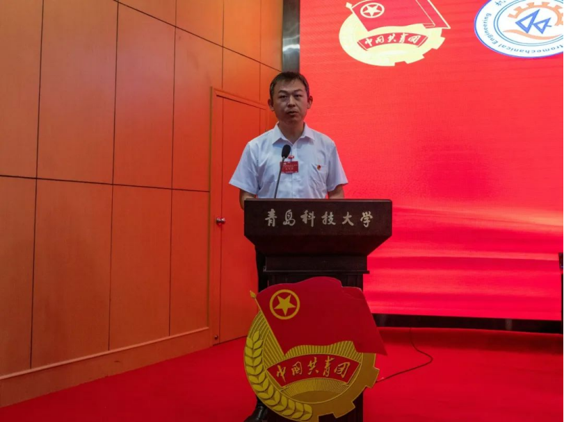 随后,大会宣读了校团委、各兄弟学院团委的贺电、贺信。化工学院团委书记秦洪庆代表兄弟学院团委向大会致贺词。