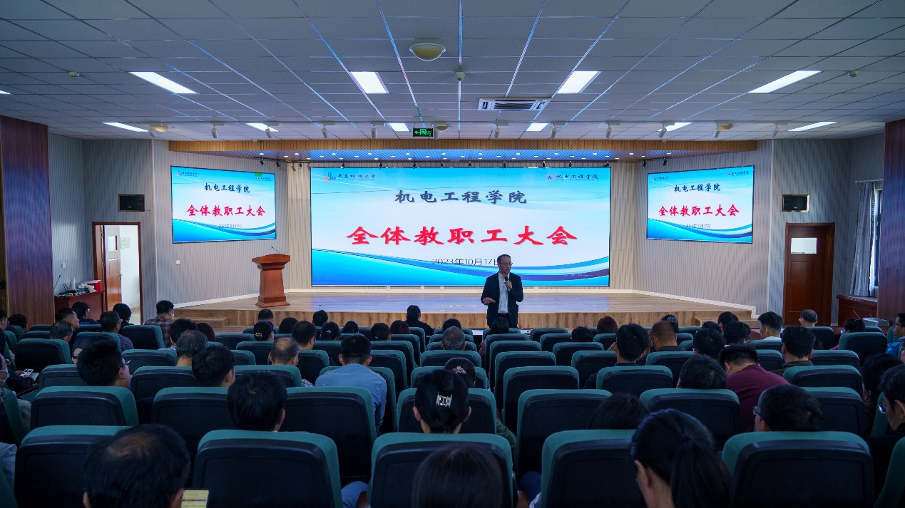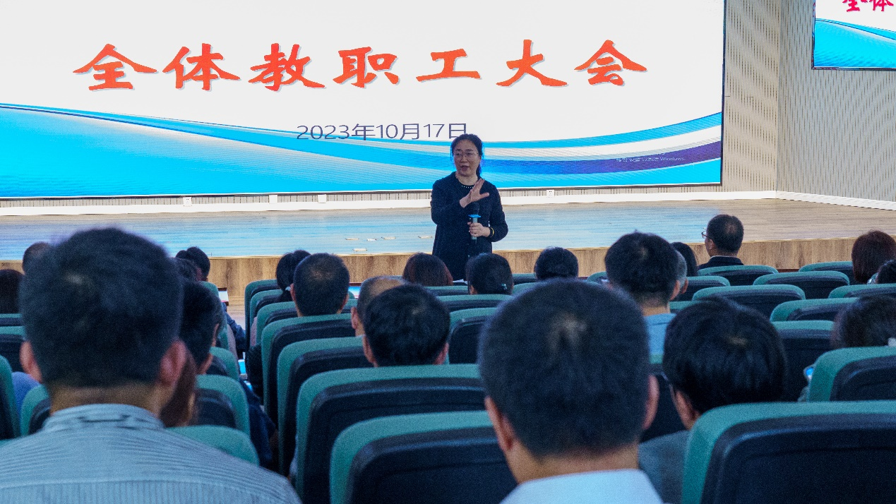 召开全体教职工大会。学院党政领导班子、全体教师参加会议。