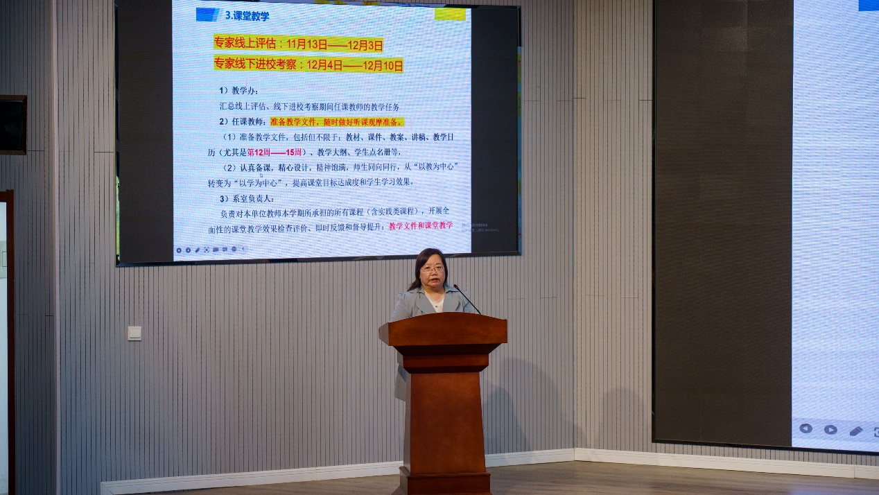 会上,学院院长何燕指出,全院师生要进一步提高认识、统一思想,紧扣立德树人根本任务,提高对教育教学工作重要性的认识,认真学习本科教育教学审核评估相关知识,推进评估分类,以评促建、以评促改、以评促管、以评促强,领悟本科教育教学审核评估各类指标的内涵,全力展现最佳的教学风貌,推动各项工作的顺利进行。