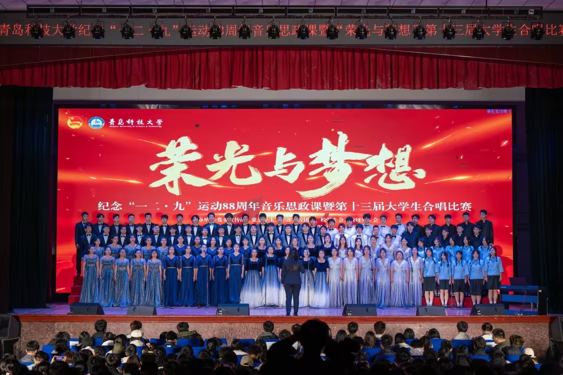 纪念“一二·九”运动88周年音乐思政课暨“荣光与梦想”第十三届大学生合唱预决赛、总决赛分别在崂山校区第二报告厅、四方校区西礼堂举行,比赛共评选出一等奖2个、二等奖4个和三等奖8个。经过激烈角逐、评委现场评审,爱情岛