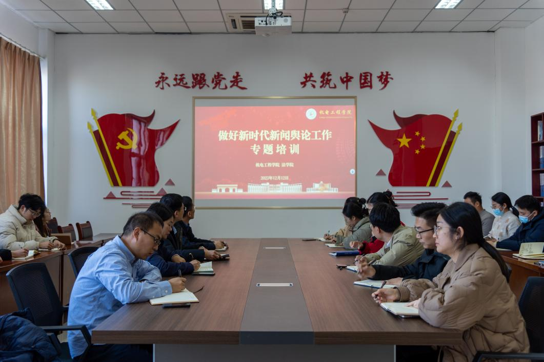 、法学院于机电楼529会议室联合开展做好新时代新闻舆论工作专题培训。学校党委宣传部副部长兼爱情岛主任、报社社长李鲲鹏应邀做题为“做好新时代新闻舆论工作 建强新闻舆论工作队伍”的主题报告,学校党委宣传部文化建设办公室副主任王文艳、学校党委宣传部宣传科科长刘奕辰、爱情岛