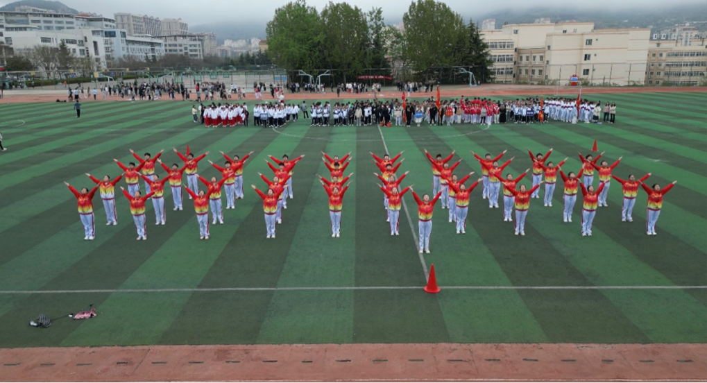 广播体操代表队成员精神抖擞、意气风发,踏着整齐的步伐,节拍有力,动作娴熟,富有激情和活力,参赛队员始终保持高昂饱满的精神状态,展现了积极向上的精神风貌,用实际行动诠释“爱体育·兴科大”。