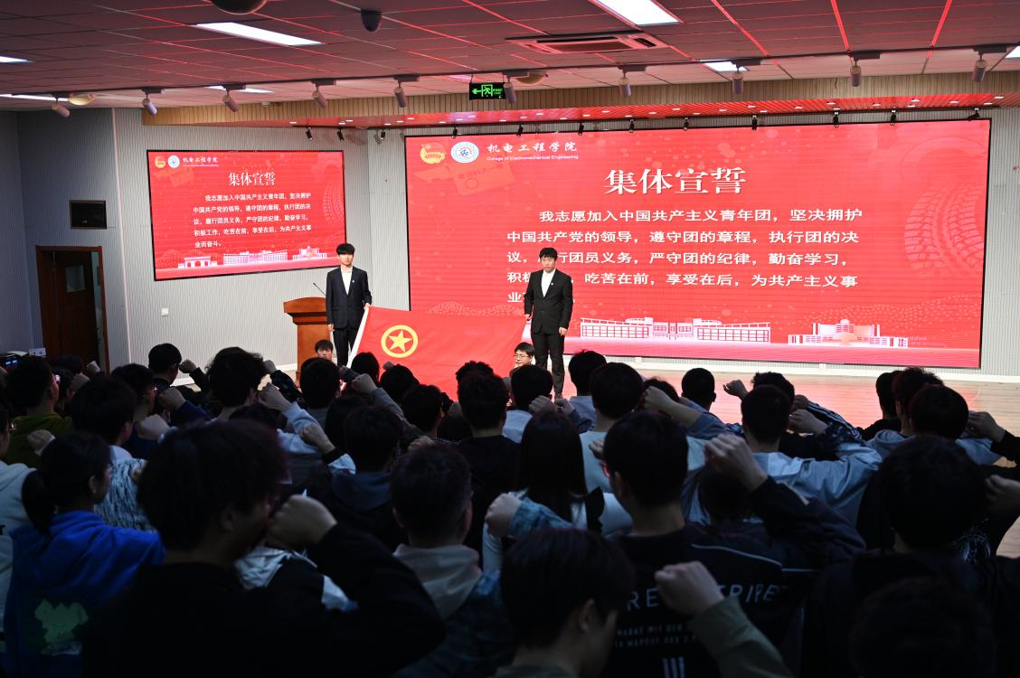 团委在机电530会议室开展“青春奋力向党,挺膺担当筑未来”2023年新发展团员入团仪式,学院党委副书记兼副院长杨小明,学院团委教师代表出席,团支部书记代表、优秀团员代表以及2023年新发展团员参加本次仪式。