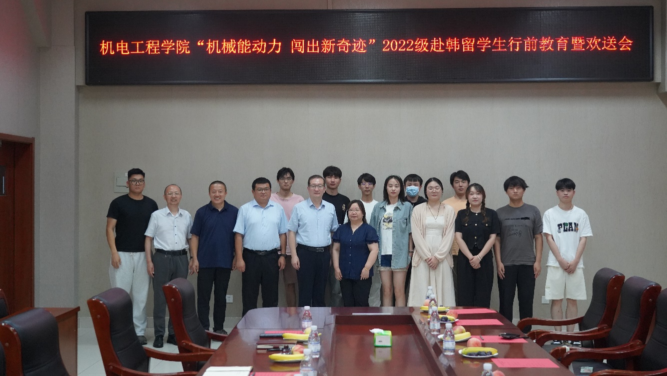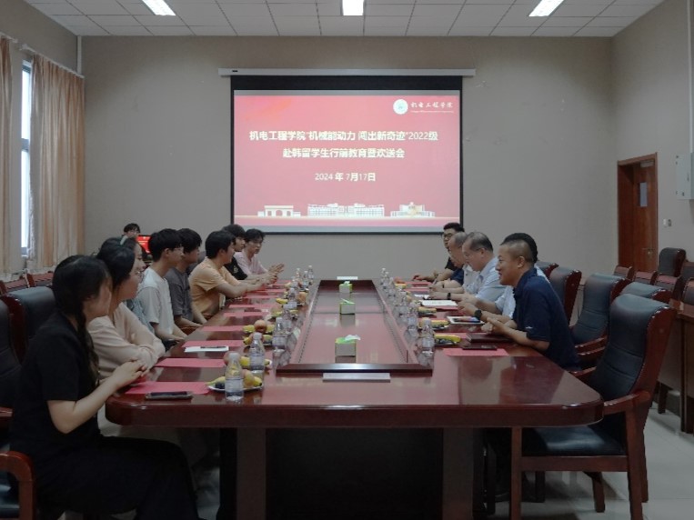 7月17日,学院于机电楼518会议室举行2022级赴韩留学生行前教育暨欢送会。学院党委书记任允晓、校国际处副处长宋飞、学院副院长杨化林、教师代表付平、辅导员宋达及22级出国留学生参加会议,学院党委副书记兼副院长杨小明主持会议。
