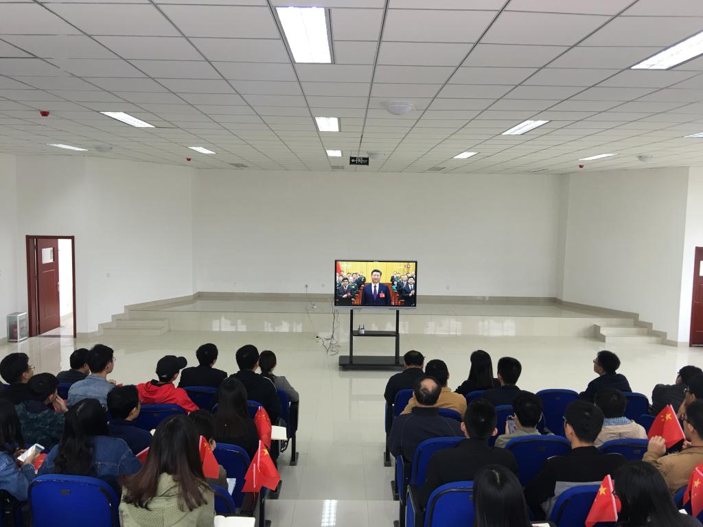 大会议室集体收看了大会实况,各党支部组织师生分别收听收看了大会实况。