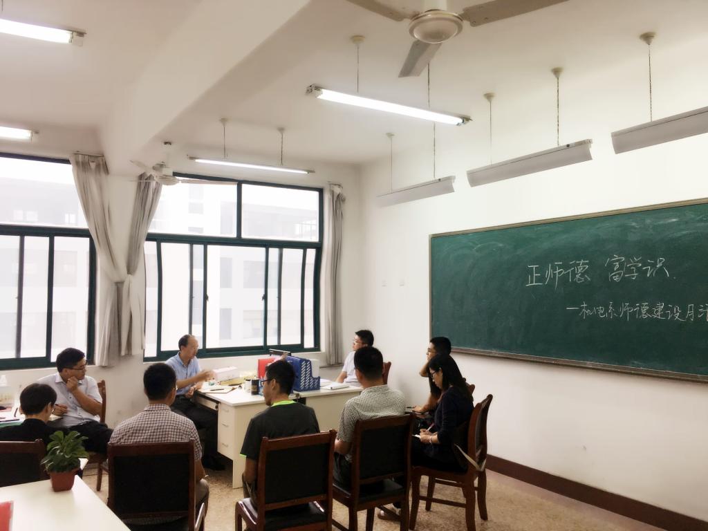 第十六届师德建设月活动的通知》。杨化林强调:作为高校教师,一要立师德、树师表,真正做到以德立身、以德立学、以德施教;二要提师能、强素质。作为年轻教师,要树立终身学习的理念,站在知识发展前沿,学习新知识、研究新方法、提升新技能,掌握扎实学识,提高教书育人的本领;三要重创新,强科研。青年教师在加强专业学习的同时,要注重培养科研能力,助力学校“双一流”建设。随后,与会老师一同观看黄大年先进事迹宣传片及《师道》专题片。最后,与会老师分别对上学期工作进行了总结交流,并结合自身专业特长汇报工作计划。