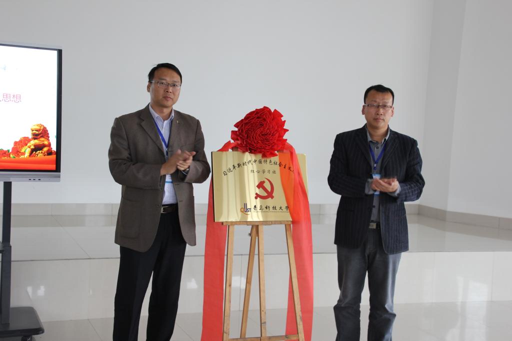 大学生习近平新时代中国特色社会主义思想红心学习社》的文件,依次邀请任允晓和秦姣共同为红旗学习社揭牌、邀请贺炜和孟祥军共同为红心学习社揭牌。作为我校第一个习近平新时代中国特色社会主义思想学习社,红旗学习社下设14个学习组,红心学习社下设153个学习组。红旗学习社主要面向爱情岛