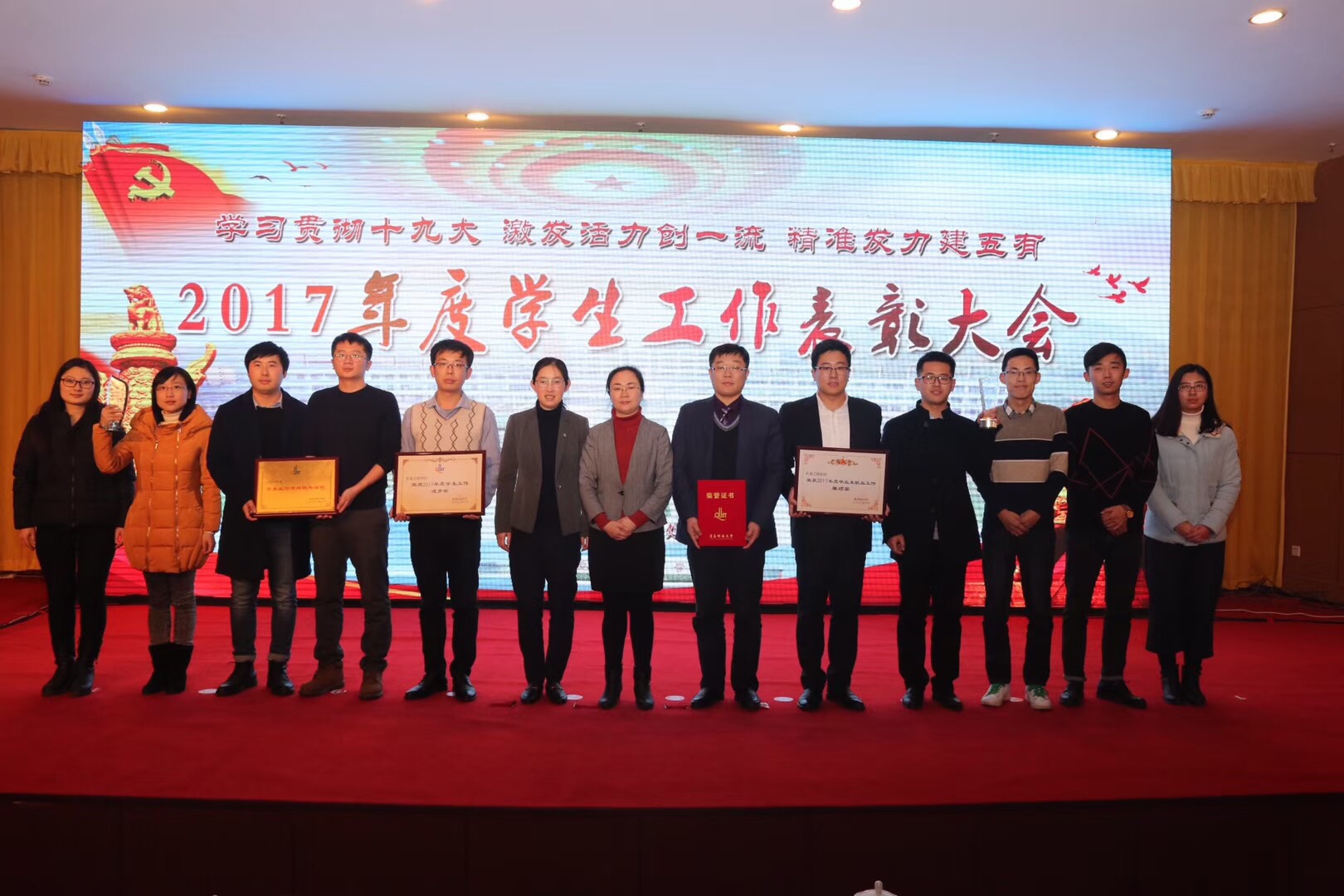获得“2017年度学生工作考核优秀单位”荣誉称号、“2017年度学生工作先进集体”荣誉称号、学生工作进步奖、“2017届毕业生就业工作先进单位”荣誉称号、2017年度毕业生就业工作单项奖,王作辉获评2016-2017学年优秀辅导员、赵海霞获评第二届十佳班主任、胡顺晓、秦楠、李剑光获评2016-2017学年优秀兼职辅导员、董佳乐获评第一届“青科好班长”等系列荣誉称号。