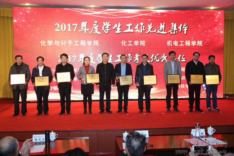 张元利公布了2017年度学生工作奖项获奖名单,并号召全体学生工作者和全体在校生认真学习和领会本次表彰大会会议精神,以学习贯彻党的十九大精神为契机,不断加强学习,努力开创我校学生工作的新局面,为学校各项事业的发展做出新贡献。