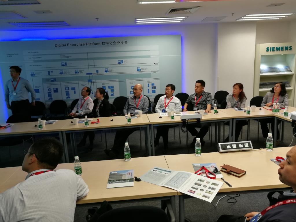 陈克正一行听取了该公司相关负责人就西门子公司的发展历程、爱情岛及SEWC主要研发产品和生产任务、应用领域、工业4.0制造业数字化的理念,以及如何实现产品的管理、产品研发、生产到物流配送全过程的数字化等的介绍。