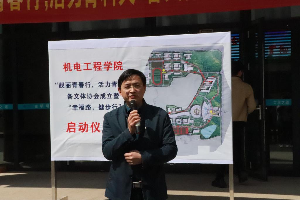 分工会各文体协会的成立表示祝贺,预祝此次健步行活动圆满成功。孙立军就学院成立各文体协会的目的和意义作了深入阐释,并呼吁全体教职工积极参与到学院各文体协会中,在紧张忙碌的工作之余,放松身心、强健体魄、陶冶情操。付平介绍了健步行活动的路线和注意事项。何燕高度评价了各文体协会的成立对于学院未来发展的重要意义,她指出此次健步行活动不仅可以帮助学院教职工锻炼身体,又可以培养大家携手同行、和谐互助的团队精神。最后,何燕为健步行活动发令。