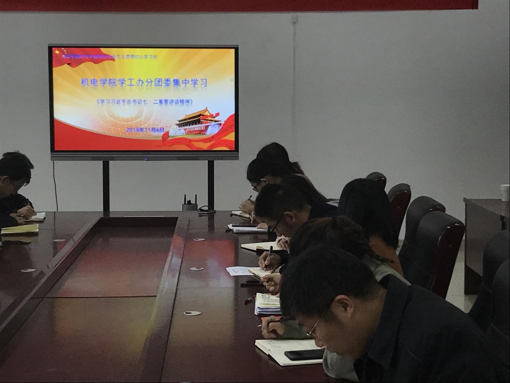 习近平新时代中国特色社会主义思想红心学习社在D3-518会议室组织集中学习习近平总书记在同团中央新一届领导班子成员集体谈话时的重要讲话精神。分团委书记王作辉和全体专职辅导员参加会议,会议由王作辉主持。