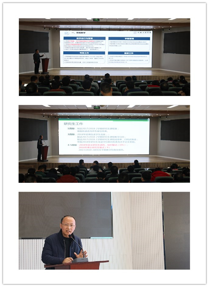 院长何燕、党总支书记孙立军、副院长郭建章、张斌、杨化林、副院长兼党总支副书记王伟、副院长张卫锋分别了做了年终总结。会议由孙立军主持。