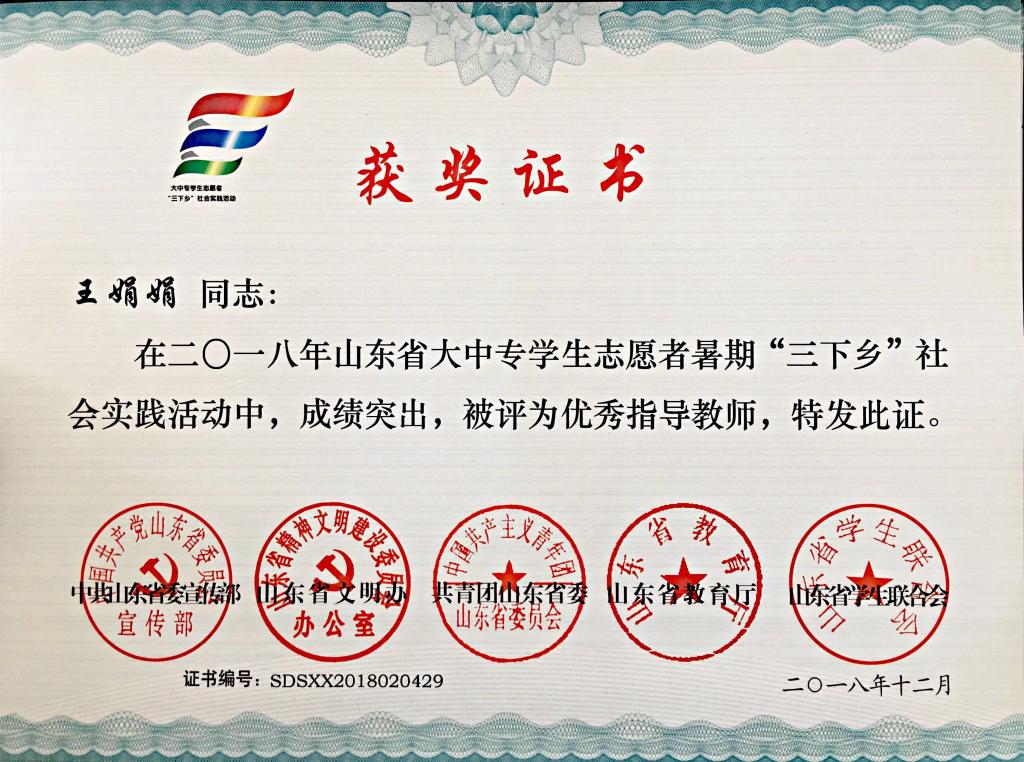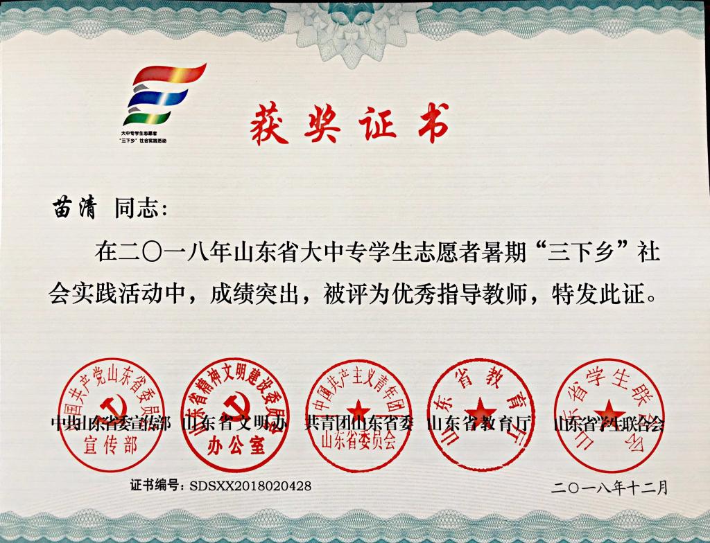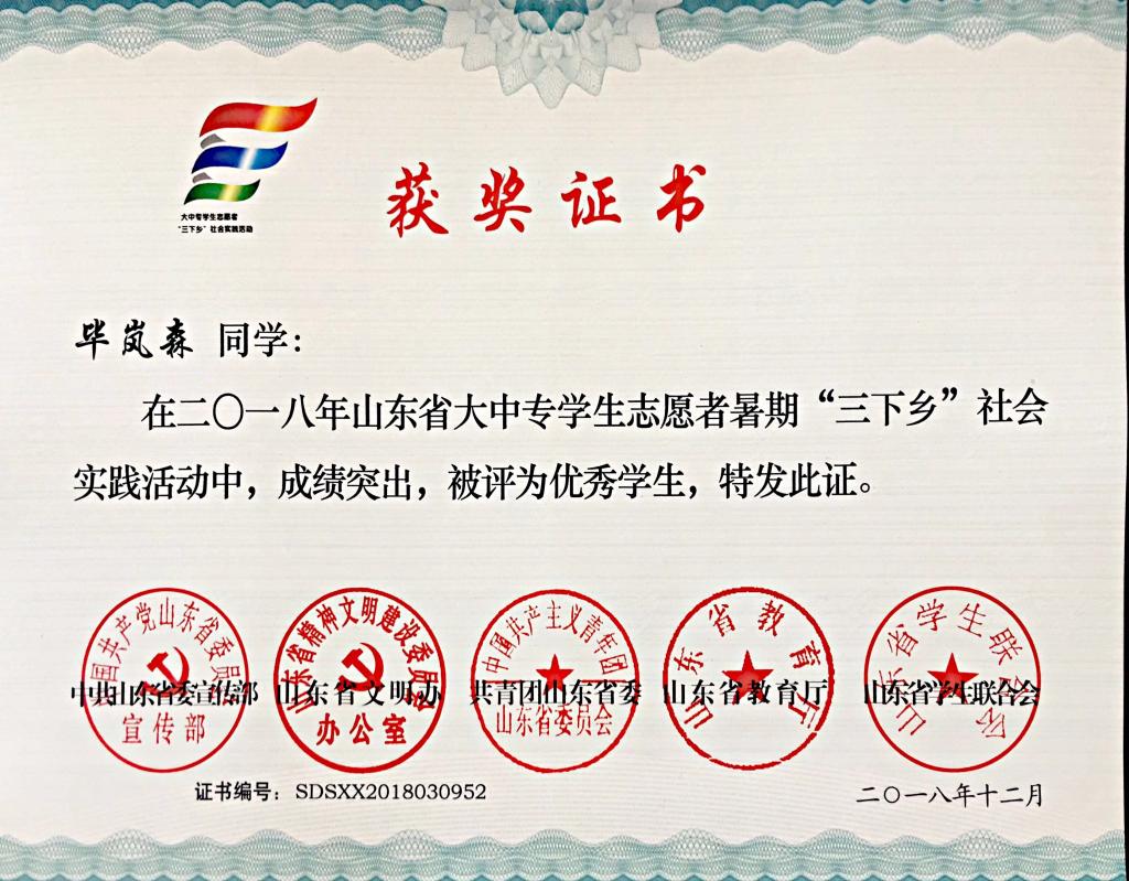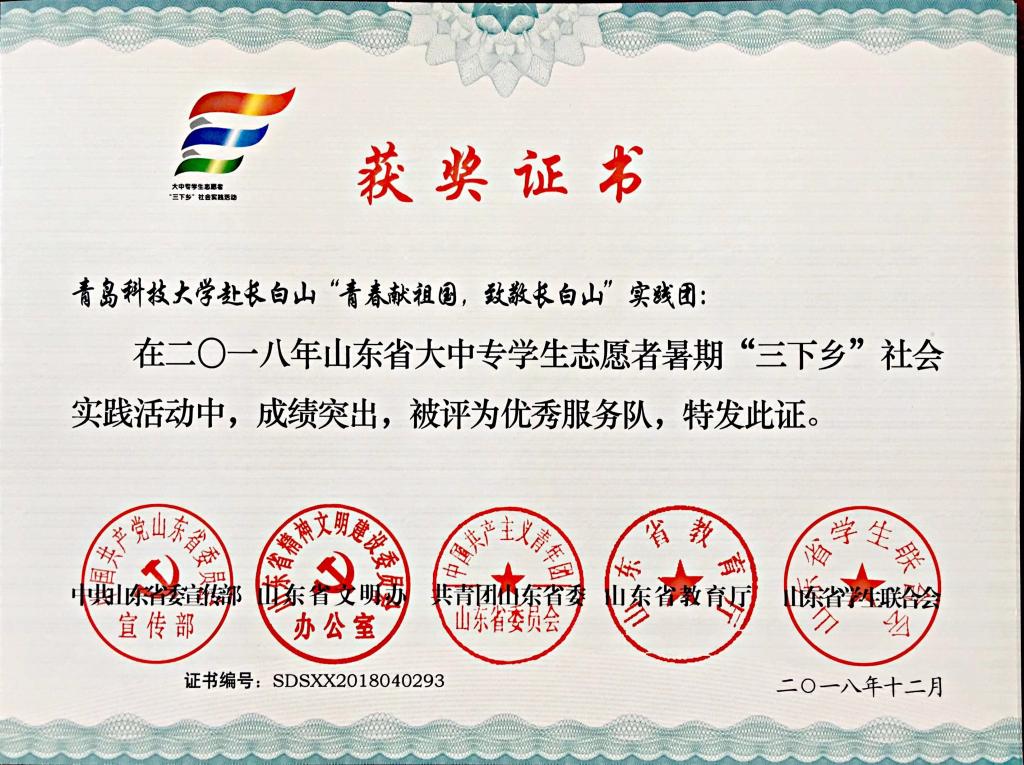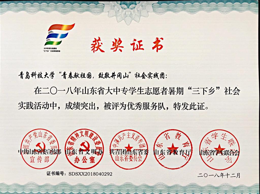 近日,2018年山东省大中专学生志愿者暑期文化科技卫生“三下乡”社会实践活动先进集体和先进个人的证书下发,爱情岛