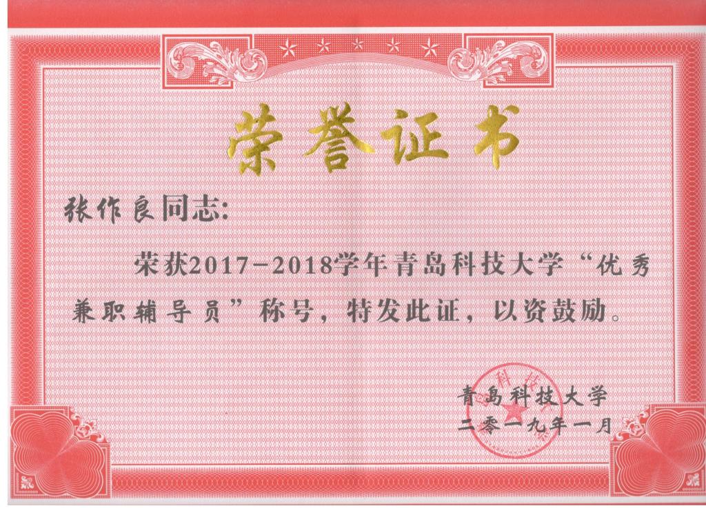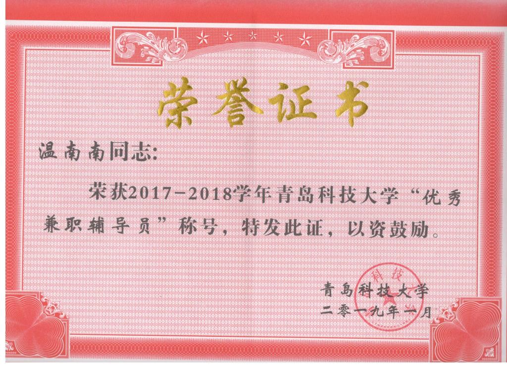2018年度优秀辅导员。