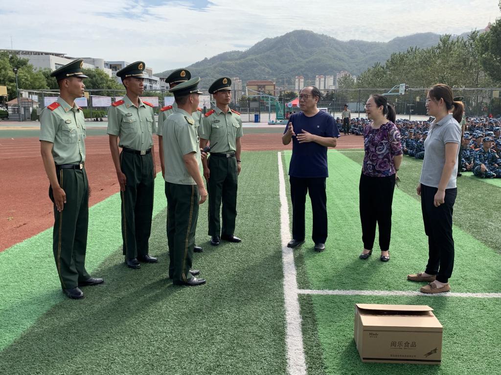 院长何燕、党总支书记孙立军、党总支副书记王伟、分团委书记王作辉等领导来到新生军训现场,亲切看望慰问教官和参训学生,并对学院军训工作进行了深入了解和指导。