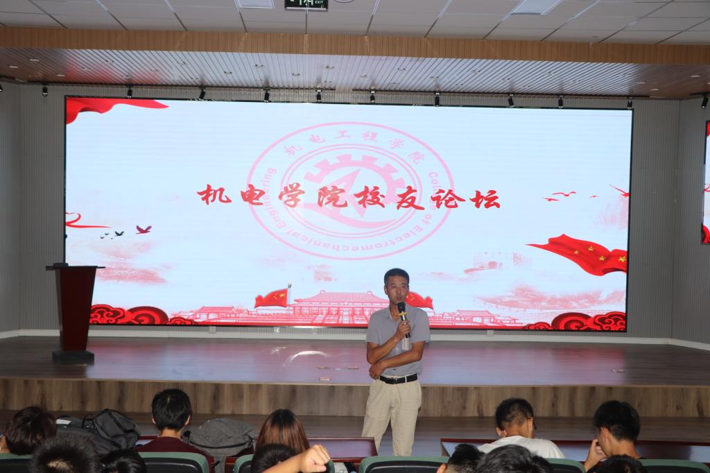 校友会第一届理事会副秘书长、宁夏生态农业发展公司总经理,学院优秀校友代表辛海东给机电学子围绕“为什么学习”做了讲座。富有感染力的人生故事,受到了学生们的热烈欢迎,最后他寄语机电学子在大学里不仅要学习课本知识,更要透过课本知识的学习,掌握学习能力。