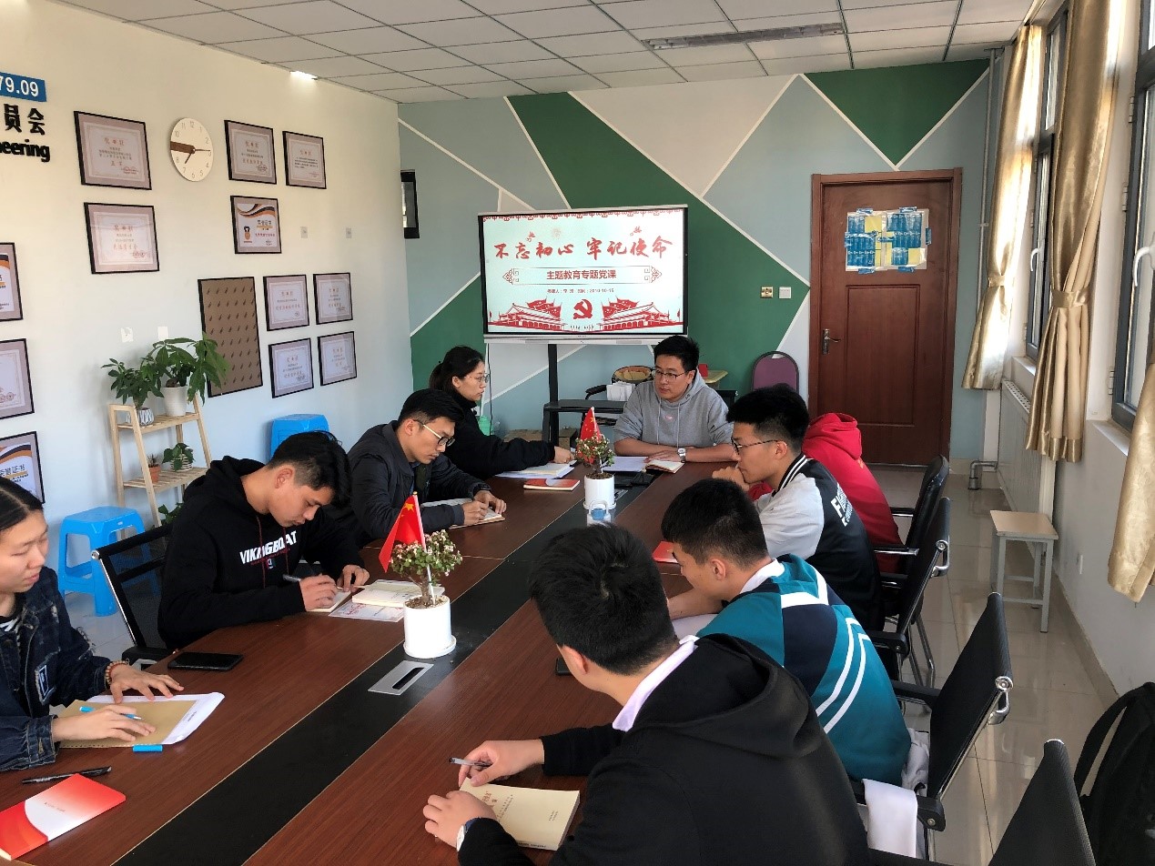 本科生第一党支部书记李浩,在机电楼213学生会办公室讲了题为《贯彻落实党的十九大精神》的“不忘初心、牢记使命”主题教育的专题党课。李浩、郭佩佩、王玉凯及全体学生党员参加了现场学习。