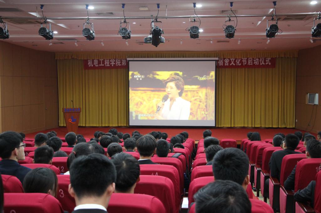 曲智强宣读《关于开办“扬宿舍文化,展机电风华”宿舍文化节活动的通知》。2019级新生代表王立瓒同学进行了表态发言。