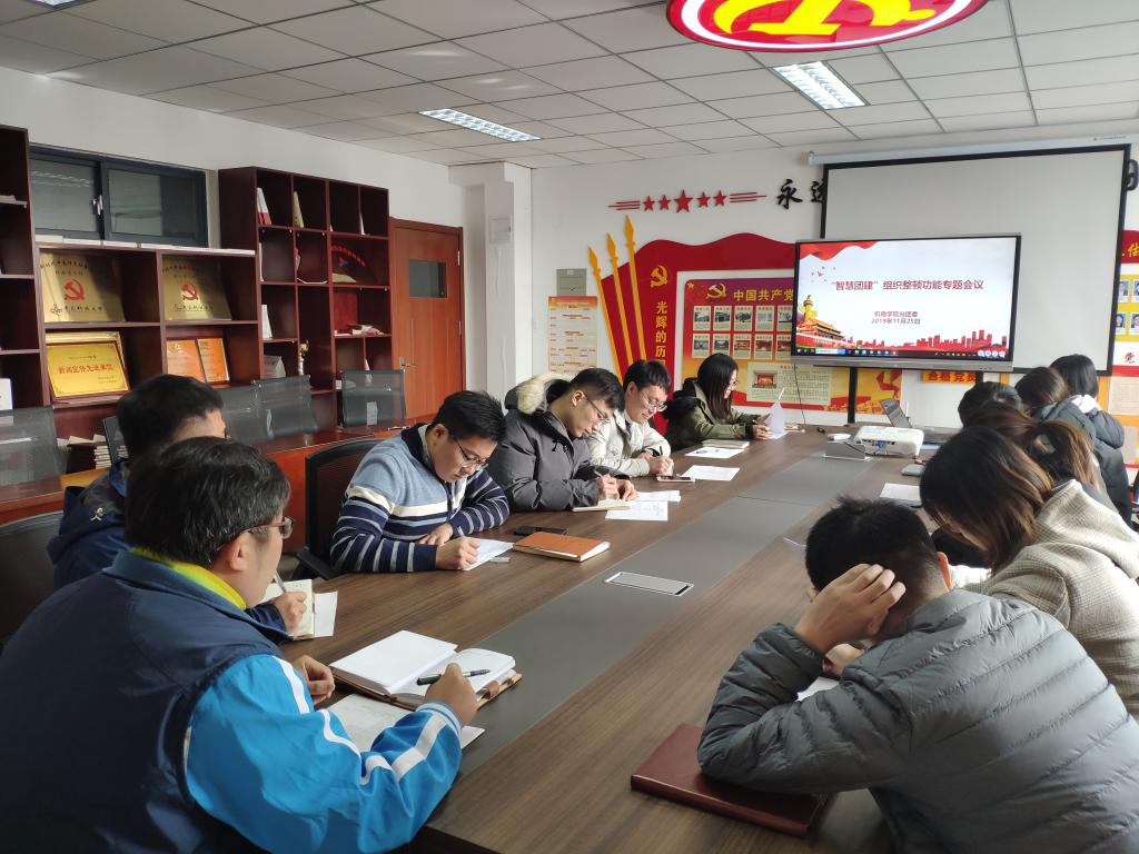分团委在机电大楼505会议室开展“智慧团建”组织整顿功能专题会议。会议由学院分团委书记王作辉主持,学院分团委组织部部长王娟娟主讲,全体专兼职辅导员参加了会议。