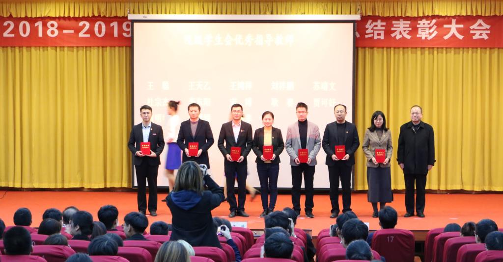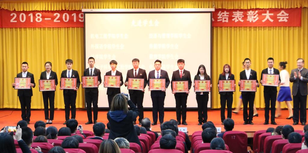 “初心使命践于行 凝心聚力共发展”2018-2019学年学生组织工作总结表彰大会在崂山校区第三报告厅举行。