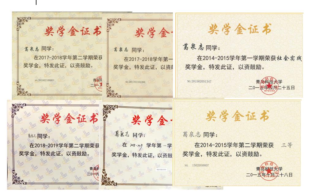 2018年 获山东省高等学校“优秀学生干部”荣誉称号;