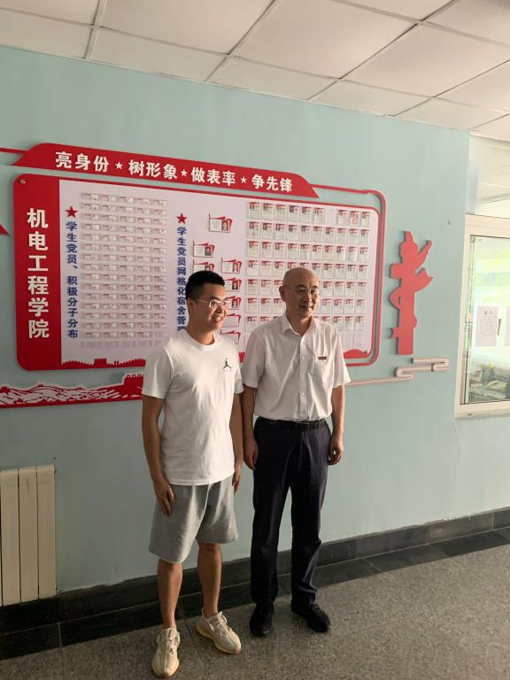 陈克正走进宿舍并与机电学子亲切交谈,询问机电学子开学生活学习情况,并寄语机电学子要坚定理想信念,坚持跟党走,努力学习科学文化知识,在祖国最需要的地方绽放青春之花。陈克正并看望了“牟平好人”罗浩宇同学,赞扬其在抗击疫情中展现出机电学子的青春风采。