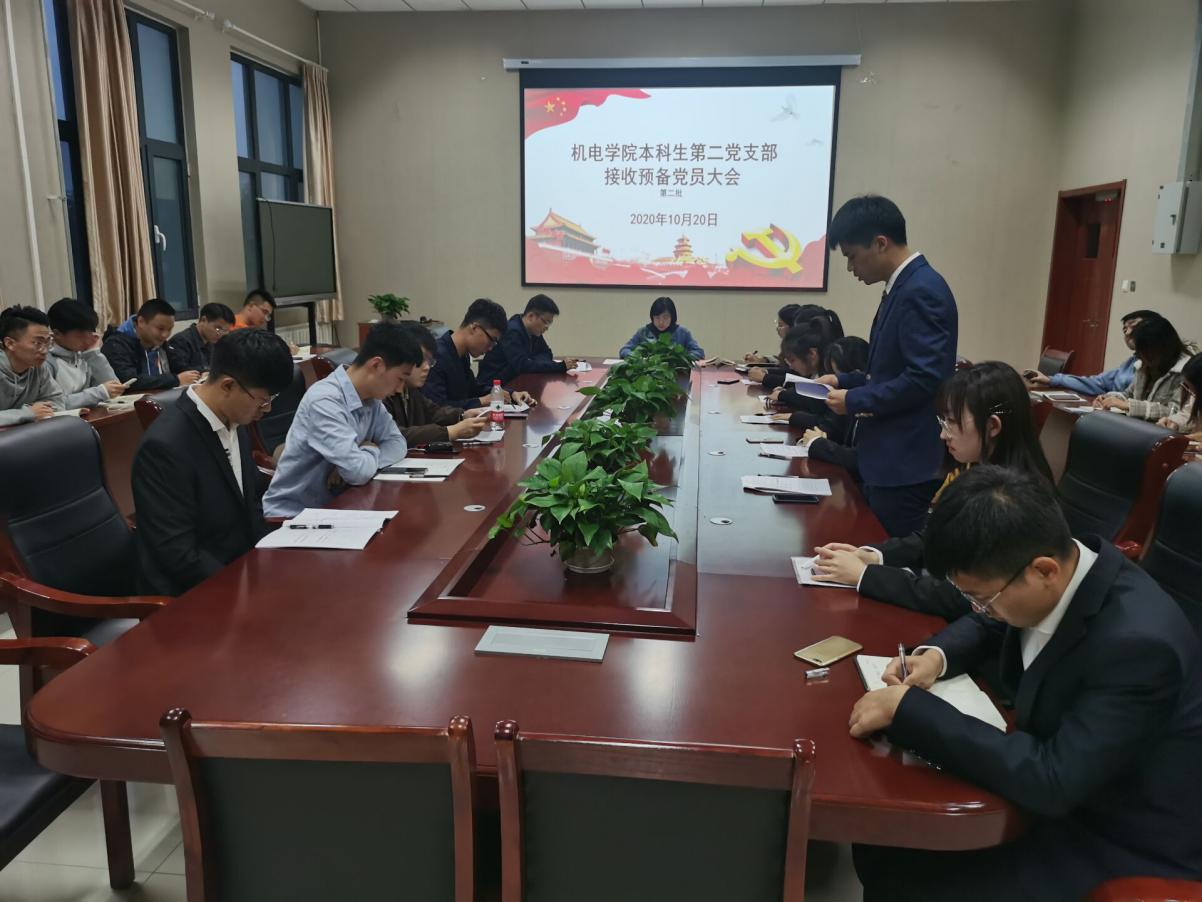 本科生第二党支部在机电楼518会议室隆重召开接收预备党员支部大会,支部全体党员参加会议,会议由支部书记王娟娟主持。