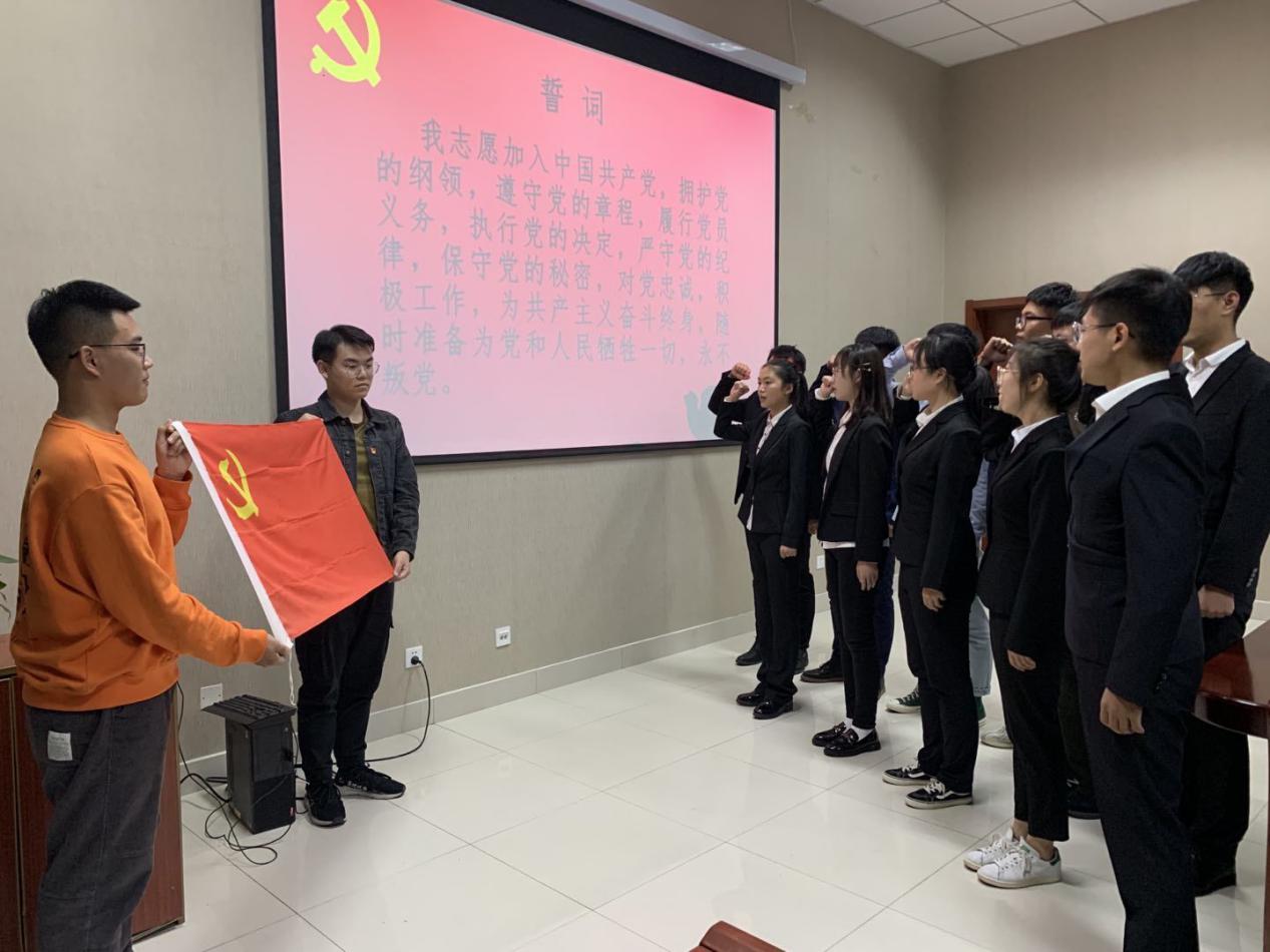 随后,11位预备党员面向党旗,庄严地进行了入党宣誓。祝豪杰代表全体预备党员进行发言,表示今后会继续加强政治学习,时刻按照一名正式共产党员的标准严格要求自己,不辜负组织的期望。