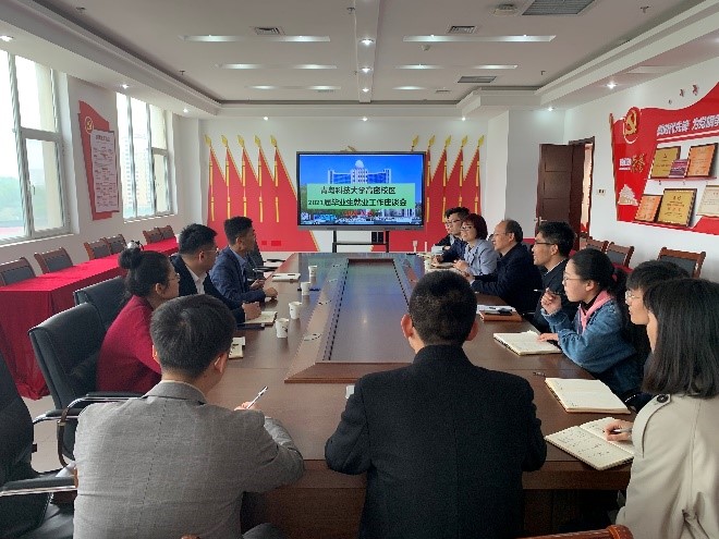 上午,肖强一行来到高密校区党建阵地,认真聆听学习了中国共产党百年历程展览,并分别与高密校区2021届毕业生辅导员关于就业教育、就业指导、就业服务、就业帮扶等方面开展交流座谈,与机电系教师、辅导员就人才培养、学生工作等进行了座谈。