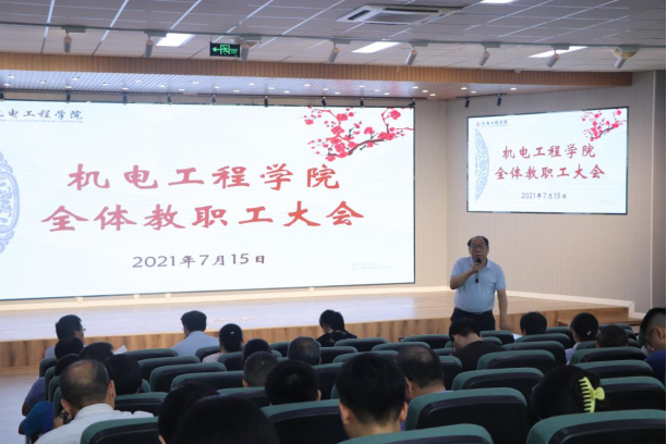 在D3楼530会议室召开全体教职工大会,学院党委书记孙立军,学院院长何燕,学院领导班子及全体教职工参加了会议。会议由院长何燕主持。
