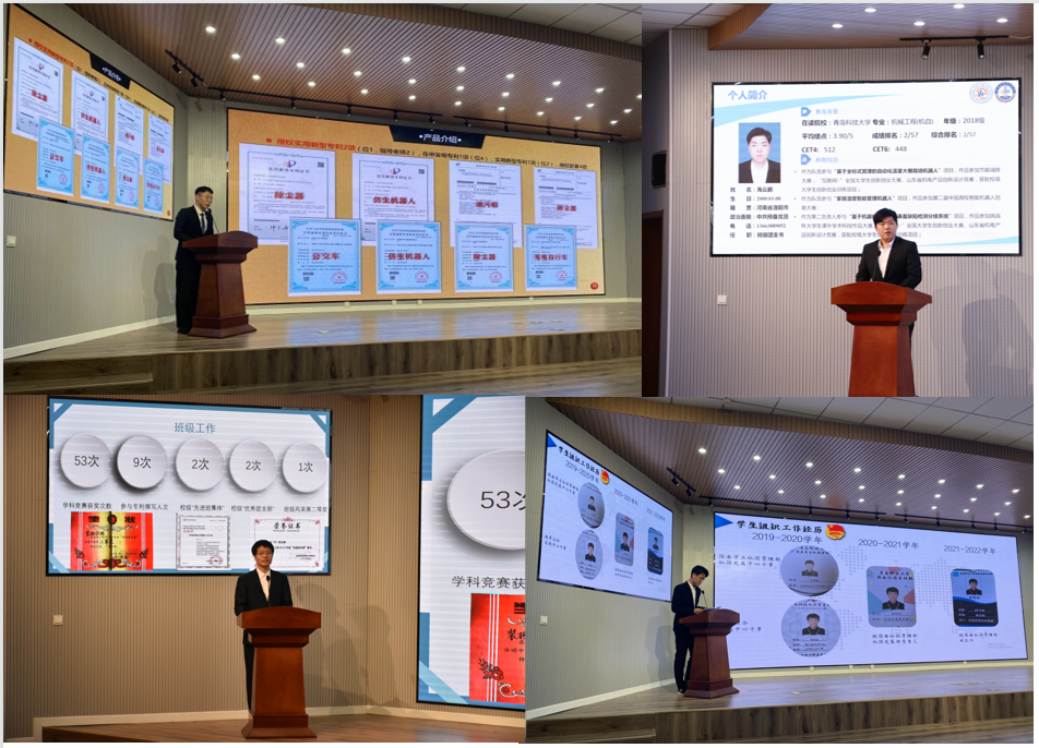 答辩现场,各答辩人以PPT形式分别从个人基本情况、思想道德、学习成果、社会实践、创意创新、文体竞赛等多角度,阐述自己过去几年的大学生活的突出表现和自身优势。选手们利用充实的内容、杰出的个人表现、昂扬的精神面貌赢得了在场评委老师和学生代表阵阵掌声。答辩内容充实、气氛热烈,全面展示了青年一代奋斗正当时的青春面貌和浩然正气的青年担当。