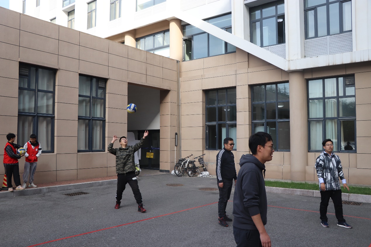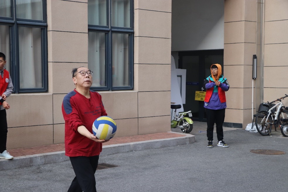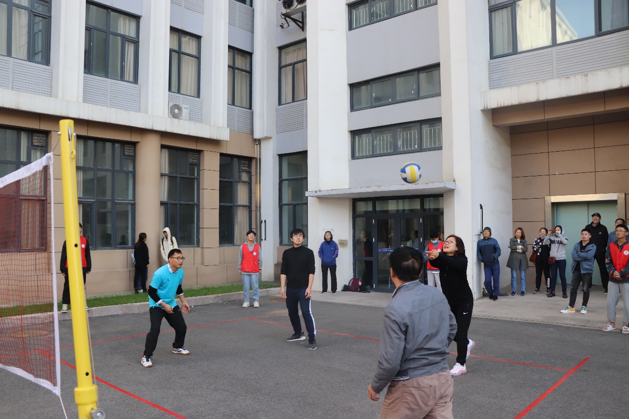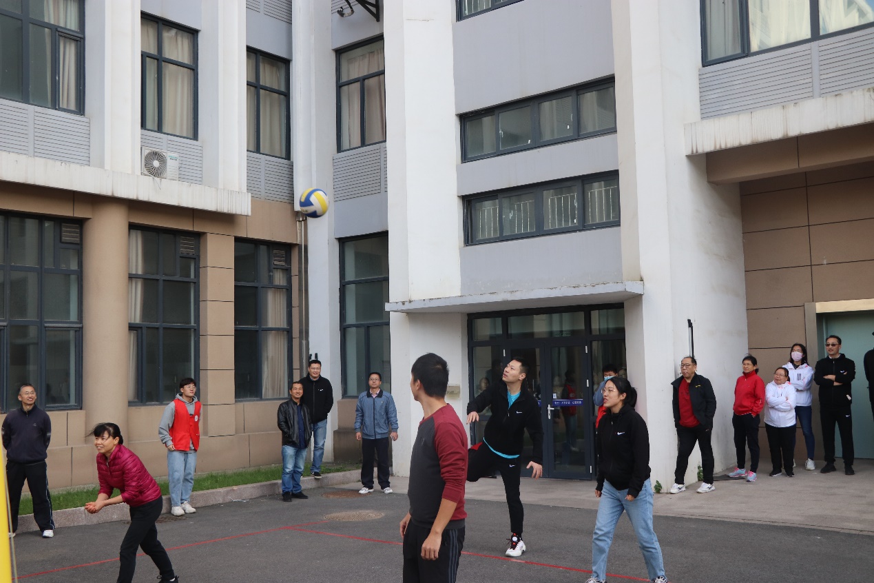 教职工参与的气排球比赛在机电楼广场进行。