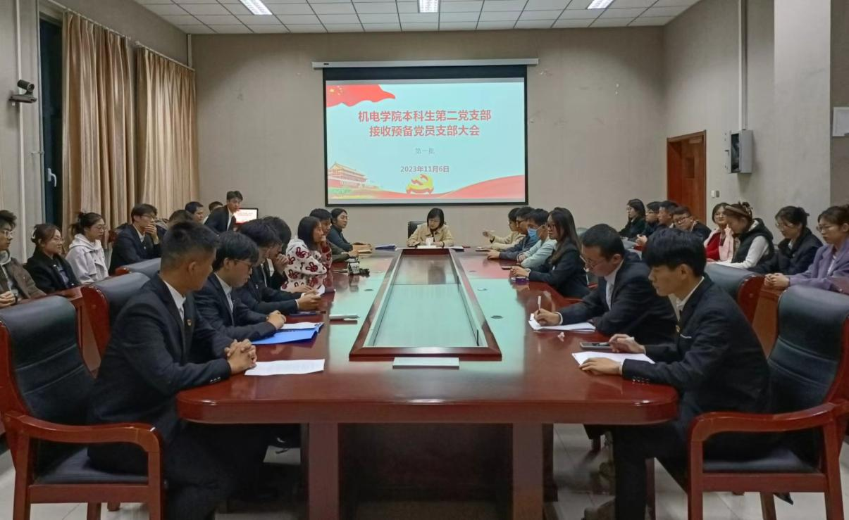 本科生第二党支部在机电楼518会议室隆重召开预备党员接收大会。本次会议由党支部书记王娟娟主持,应到正式党员9名,实到会8名。