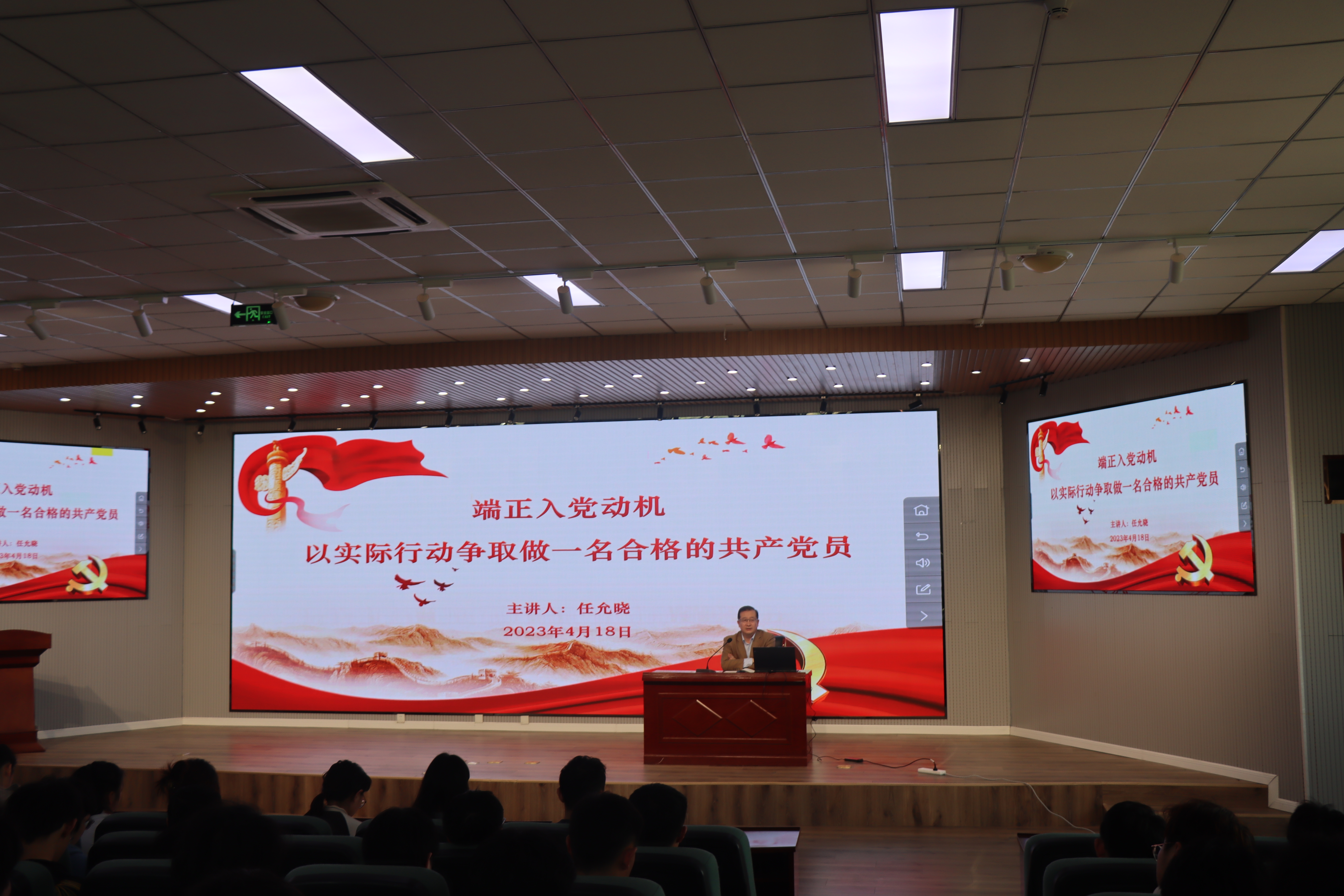 为了加强对入党积极分子的培训工作,深化党的思想引领,进一步提高入党积极分子的基础理论素养,4月18日,爱情岛 党委书记任允晓为学院2023年春季学期入党积极分子讲授了主题为“端正入党动机,以实际行动争取做一名合格的共产党员”的专题党课,214名学员参加了党课。