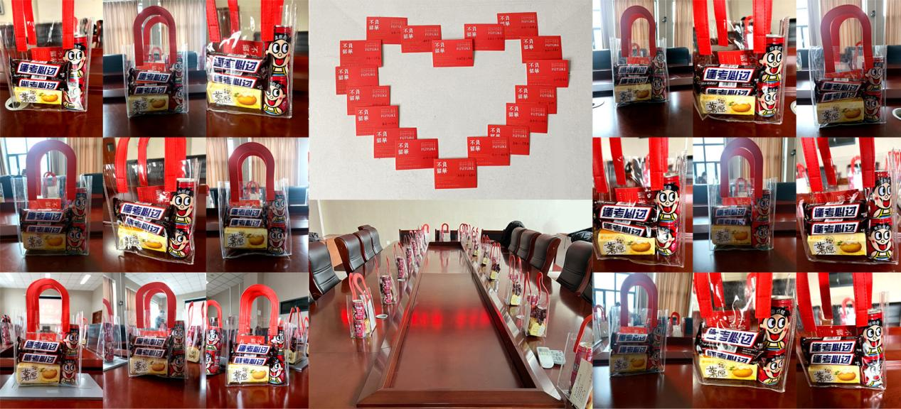 本科生第二党支部为20级考研的同学们送上温暖祝福,送去了充满美好寓意的“考研胜利大礼包”。礼包中的每一份物品都经过了认真选择、精心设计,专属定制承载着诚挚的祝福:两瓶专属旺仔祝同学们考运旺旺,金榜题名;一包薯愿薯片祝同学们终成所“愿”,增强自信心;两支士力架给予同学们满满的能量,在考场上“全”“力”克难关。同时,党支部的其他同志们也亲手写下了考研寄语,一笔一画,是对考研学子们的祝福与鼓励;一字一句,是对他们的嘱咐与期望。